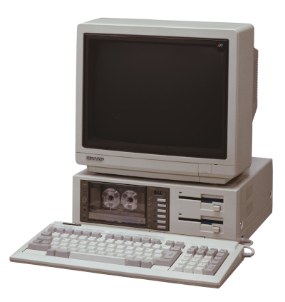 パソコンが欲しかった中学生時代の商品、パーソナルコンピュータ「SuperMZ」<MZ-2521>(1985年)です。