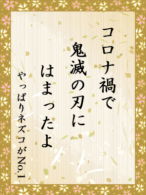 自粛生活で、娘に勧められた鬼滅の刃の漫画を読み始めてどっぷりハマり、アニメを見てさらにハマり、グッズを買いあさり、家族時間はドンジャラで楽しみ、推しキャラのTシャツを着て映画に行きました。(やっぱりネズコがNo.1さん)