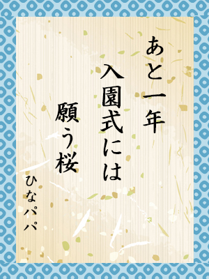 昨年、息子が大学に入学しましたが、コロナの影響で入学式も無く、新しい同級生といきなりリモート授業で コミュニケーションを取る機会も無く 新生活に馴染みにくかったようです。今年はリモートでも良いので入学式が行われるよう、願いを込めた一句です