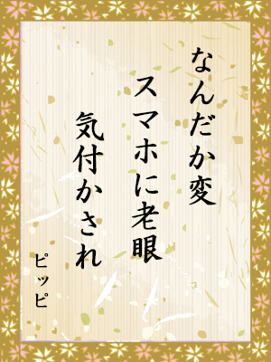 ある日、近眼な私が眼鏡を掛けてスマホを見ていたら何とも言えない違和感に襲われました。何気なく眼鏡を外すと・・・老眼であると気付かされた瞬間でした。(ピッピさん)